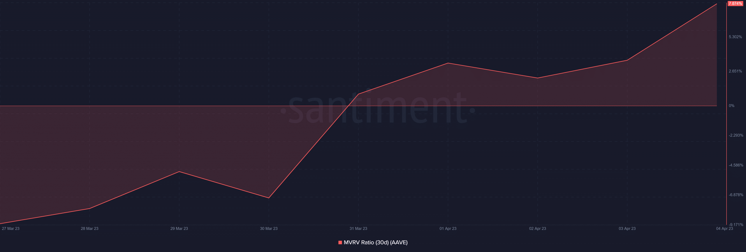 Fuente: Santiment El índice MVRV más alto también confirmó que hubo una presión de compra significativa hacia fines de marzo. Y la mayoría de esos compradores disfrutaron siendo rentables al cierre de esta edición.