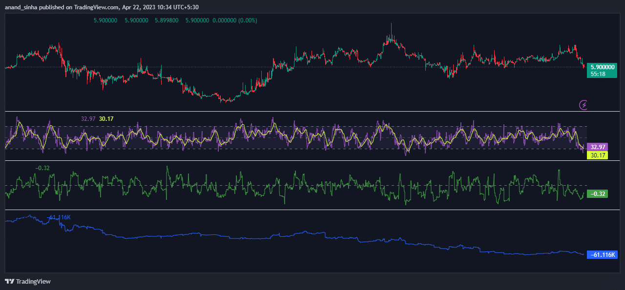 Fuente: TradingView En el momento de la publicación, el $DOT cotizaba a $5,90, lo que reflejaba un movimiento de precios a la baja. El RSI (Índice de fuerza relativa) estaba muy por debajo de la marca de 50, una señal bajista que podría empujar el precio del $DOT aún más hacia abajo. Además, el índice Chaikin Money Flow (CMF) estaba en la zona negativa, lo que mostraba que los vendedores tenían apalancamiento en el mercado. Con el OBV (On Balance Volume) también registrando una caída, no deberíamos esperar un aumento en el volumen de compra o cualquier movimiento de precio alcista hacia la marca de $ 7 en el corto plazo. Pero como muestran los datos históricos de precios, es difícil predecir el precio de cualquier token. Por lo tanto, no debemos ser demasiado pesimistas en nuestro enfoque del $DOT. En conclusión, $DOT parecía bajista en el corto plazo. Si el CMF se vuelve positivo y el OBV muestra un repunte, podemos esperar que el $DOT recupere su valor. Conclusión ChatGPT tiene una comprensión adecuada de Polkadot [$DOT] ecosistema y cómo el desarrollo de sus paracadenas podría afectar el valor de $DOT en el futuro. Según los desarrollos recientes y el sentimiento general del mercado, ChatGPT pronosticó que el precio de $DOT en 2023 y 2024 podría llegar a $ 500 y $ 672, respectivamente.