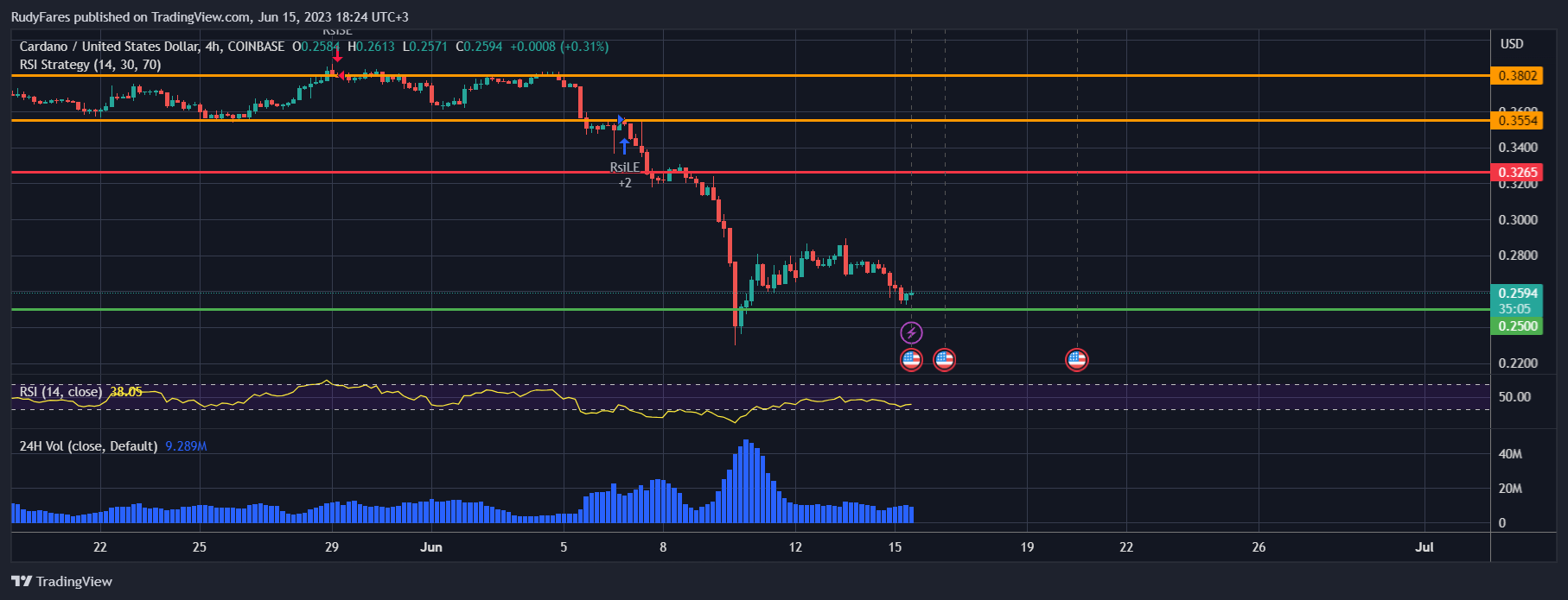 Desde principios de mes, los precios de ADA se han visto significativamente afectados, incapaces de superar el formidable precio de resistencia de $0,40. La decisión de la SEC de emprender acciones legales contra Coinbase y Binance provocó un colapso en toda la industria en el mercado de las criptomonedas, y ADA no fue la excepción.