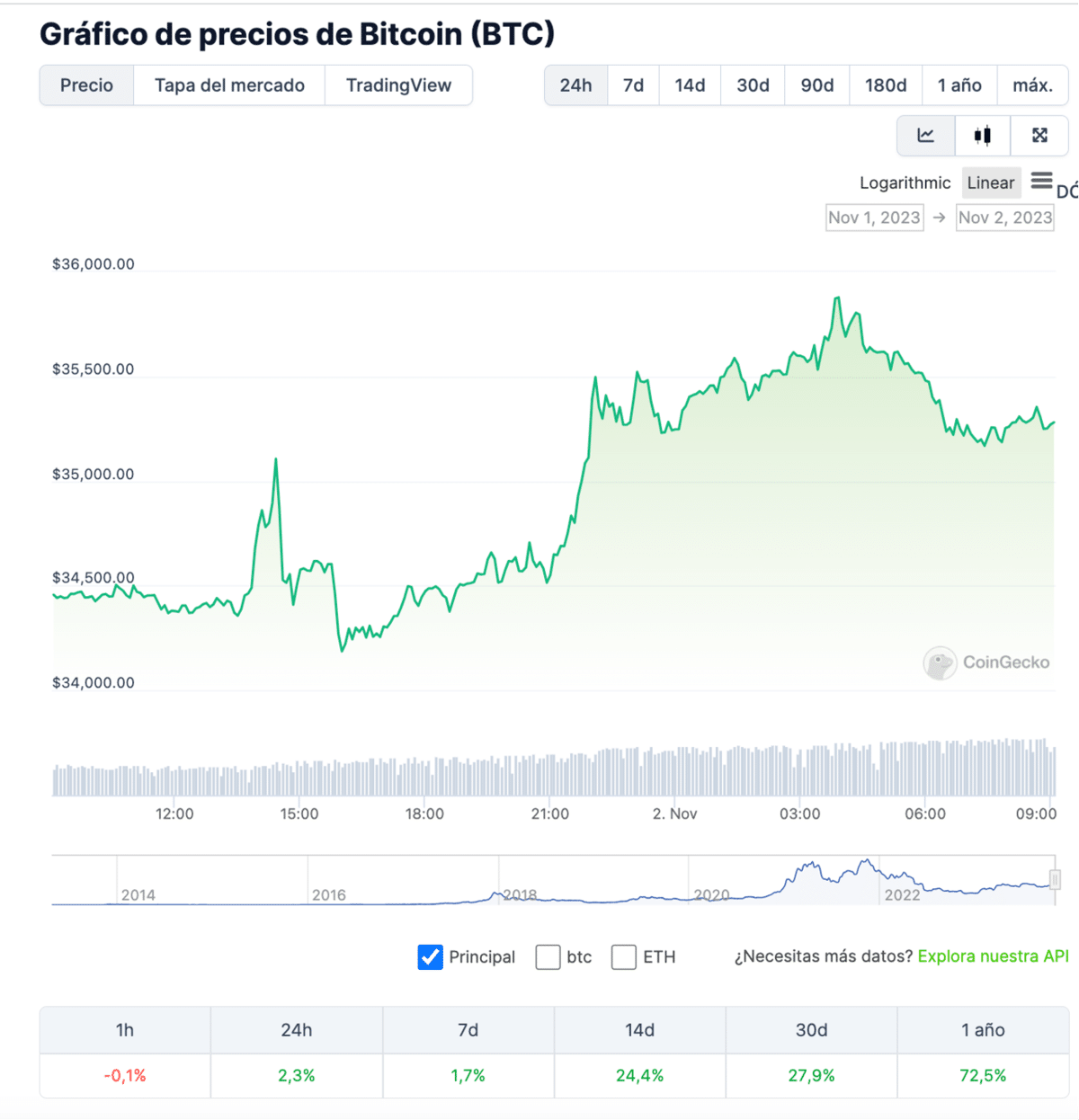 Por su parte, Bitcoin hizo eco de los principales sucesos y alcanzó otro máximo. Cotiza en estos momentos a 35.225 dólares por unidad, lo que se traduce en un 2,4% al alza en el último día. El incremento de precio genera ganancias del 28% para el último mes.