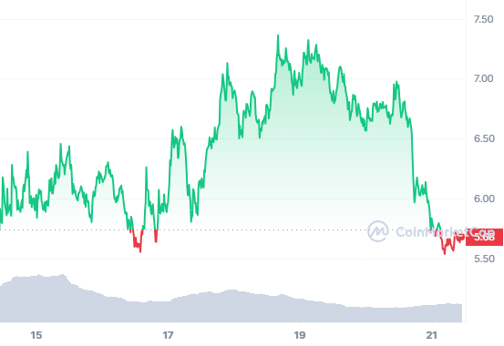 El pasado sábado, la moneda alcanzó su valor de intercambio máximo en $7.4 dólares por unidad. Desde entonces, la cotización viene en descenso hasta el precio de $5.7 dólares por moneda al momento de redactar esta nota. El precio de debut de la moneda fue en $2.10 dólares.
