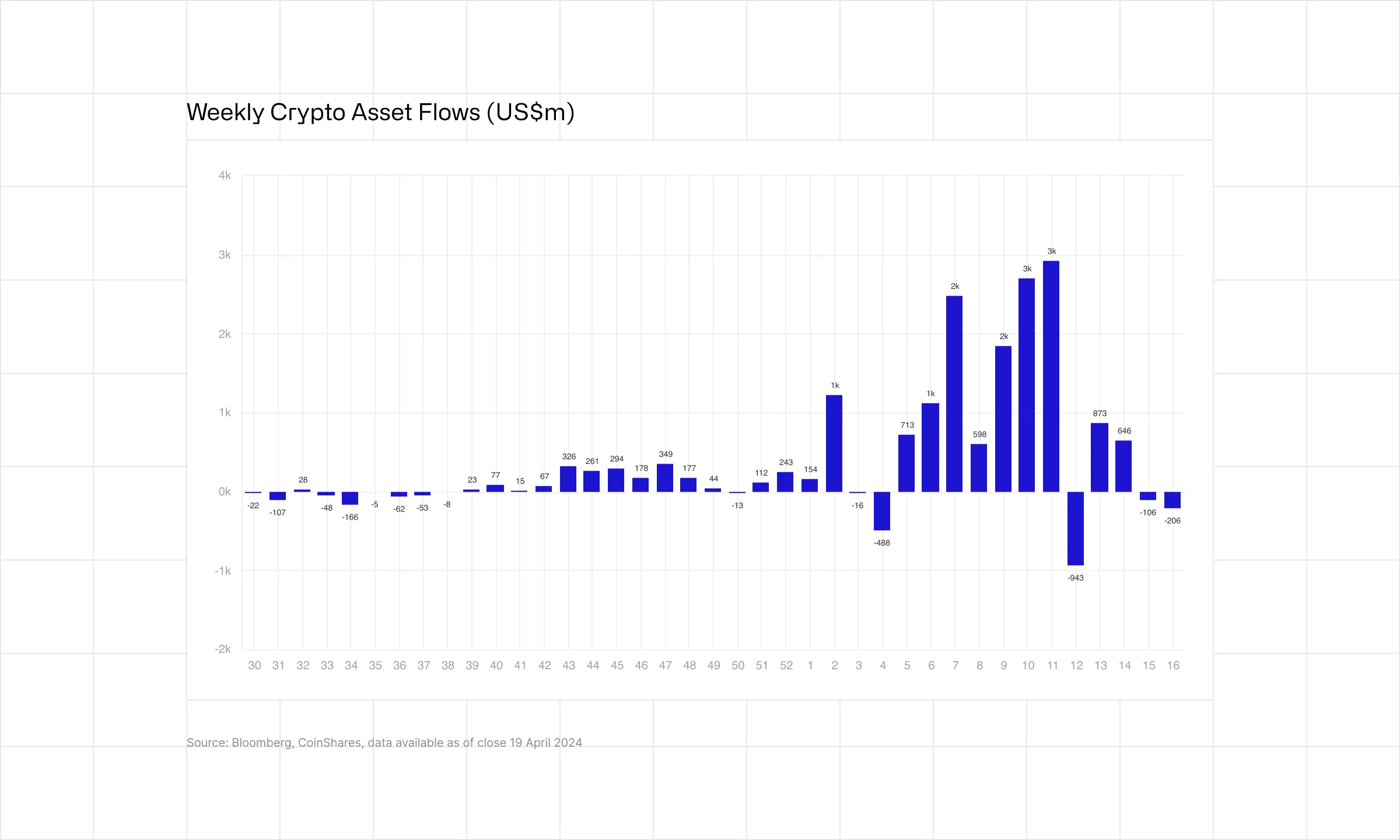 En su último informe sobre Flujos de Fondos de Activos Digitales, CoinShares revela que los productos de inversión en activos digitales sufrieron su segunda semana consecutiva de salidas de capital la semana pasada. Estas salidas ascendieron a 206 millones, lo que eleva el total de las últimas dos semanas a casi 312 millones.