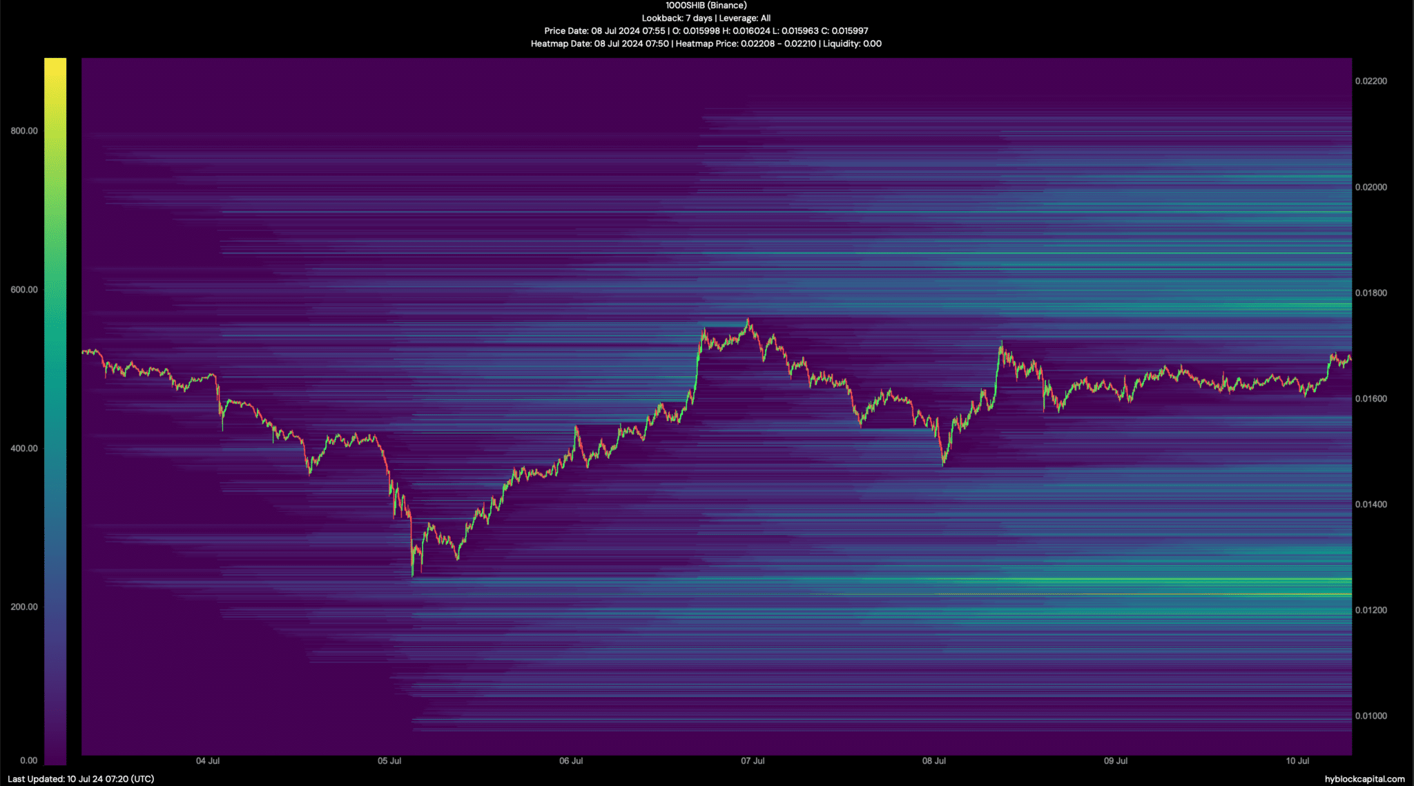 Sin embargo, las Bandas de Bollinger advierten que $SHIB está entrando en una zona de menor volatilidad, lo que podría resultar en días de movimiento lento. Según un análisis de Hyblock Capital, si $SHIB toma una dirección alcista, podría alcanzar los 0.0000177 en los próximos días. Por otro lado, si los osos toman control, podrían empujar su precio hasta 0.000012.
