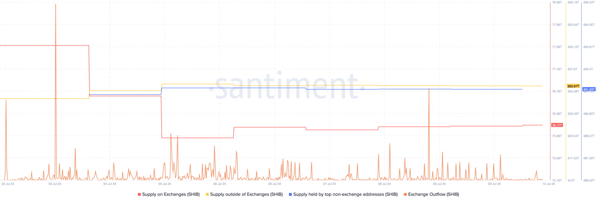 Además, se ha observado una reducción significativa en la oferta de $SHIB en los exchanges, mientras que su oferta fuera de estos ha aumentado, señalando un incremento en la presión de compra. Este fenómeno se complementa con un aumento en el flujo de salida de los exchanges, reforzando la idea de que los inversores están comprando $SHIB activamente.