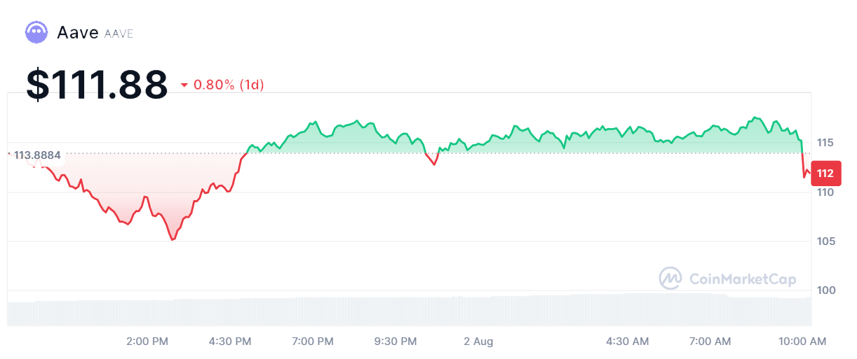 El precio de $AAVE, el token nativo del protocolo de finanzas descentralizadas de nombre homónimo, continúa su racha positiva. La moneda mantiene relativamente la fuerza que adquirió a principios de julio. ¿Es probable que su precio superé los $120 dólares por unidad en pocas jornadas?