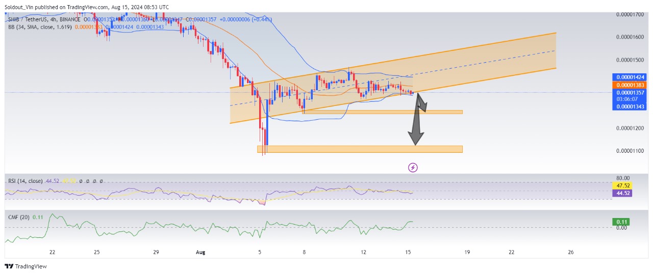 Los análisis técnicos también apoyan la tendencia bajista emergente. $SHIB confirmó la tendencia a la baja al romper el límite inferior de la formación de canal ascendente, pero se espera que encuentre soporte en los niveles de 0.00001350 y 0.00001100. Estos niveles de soporte podrían ser puntos de recuperación en caso de un retroceso.