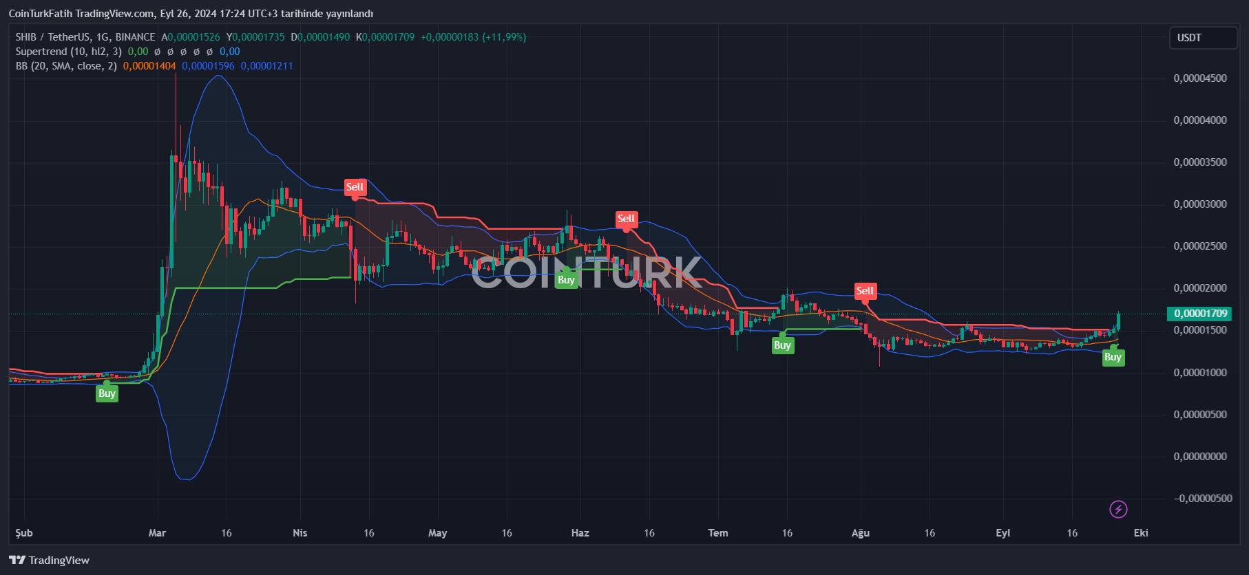 El altcoin popular de hoy, $SHIB, ha aumentado un 12%. Está apuntando a un nivel de resistencia de 0.0000176 dólares. Si esta área significativa puede lograr cierres exitosos por encima de ella, el precio podría probar los 0.00002024 dólares. Más arriba, un precio de 0.0000260 dólares podría abrir la puerta a picos emocionantes.