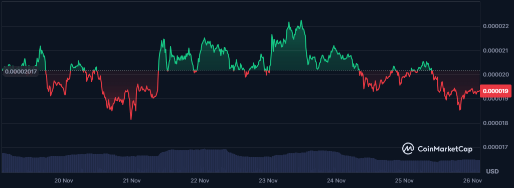 El volumen de operaciones ha aumentado en las últimas 24 horas, lo que sugiere un renovado interés por PEPE. Este incremento podría ser un precursor de movimientos más significativos en el precio.