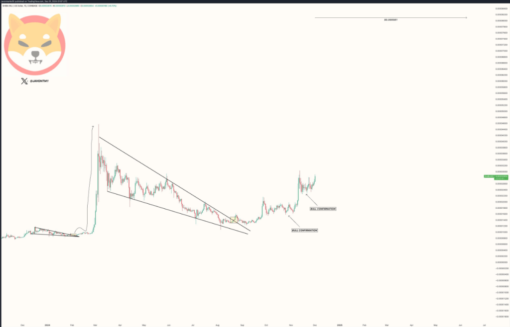 El criptoanalista Javon Marks así lo cree. Recientemente publicó información que sugiere que SHIB puede tener como objetivo $0,000081, un enorme salto del 179% desde donde está hoy. El mercado ha sido muy impredecible, pero Marks dijo que esta ruptura es una señal de fortaleza. ¿Es esto suficiente para mantener a SHIB en el centro de atención?