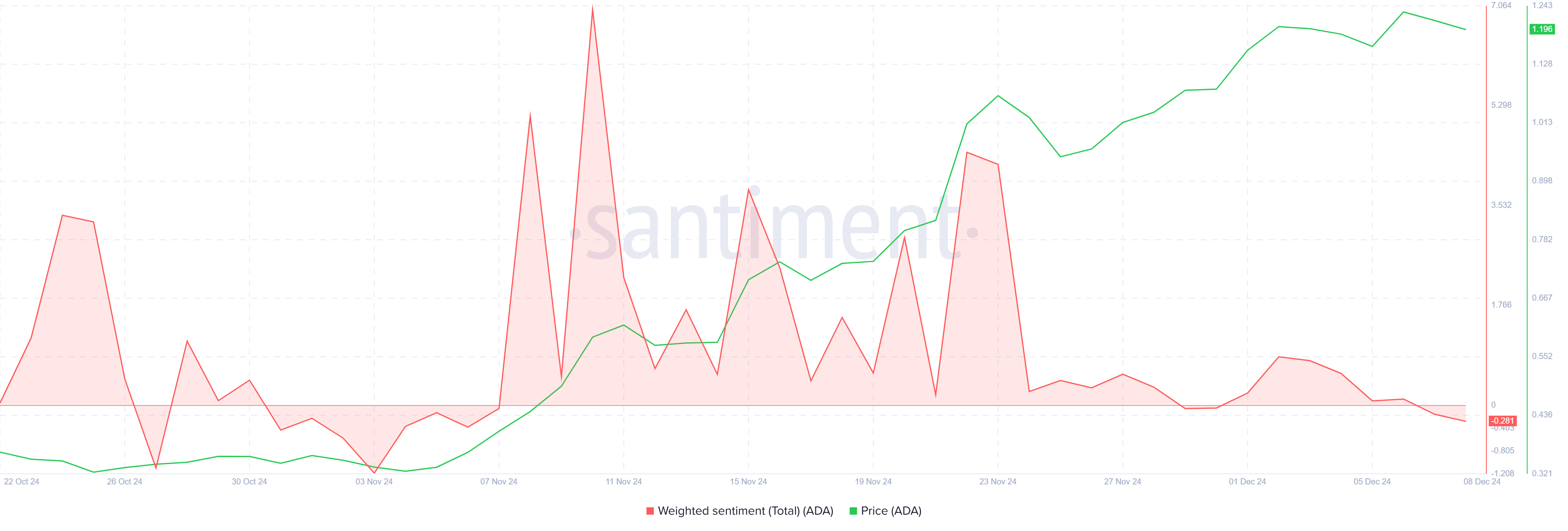 Por primera vez en más de un mes, el sentimiento de los inversores hacia Cardano se ha vuelto negativo. El optimismo en torno a ADA ha disminuido, lo que genera preocupaciones sobre su capacidad para mantener los niveles de precios actuales.