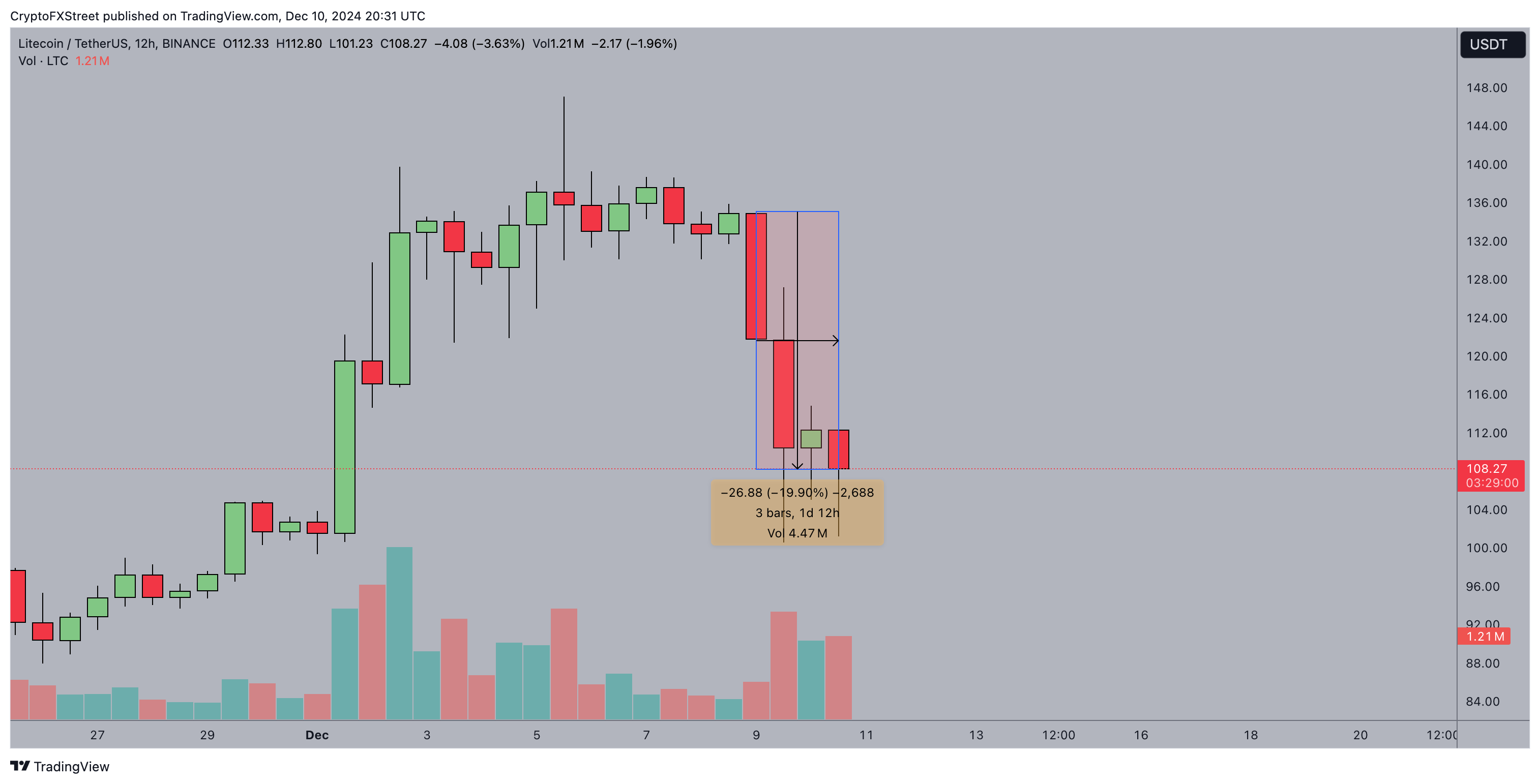 - El precio de Litecoin se consolidó por encima de los 110$ el martes después de que el colapso del mercado de criptomonedas el 9 de diciembre desencadenara una corrección del 20%.