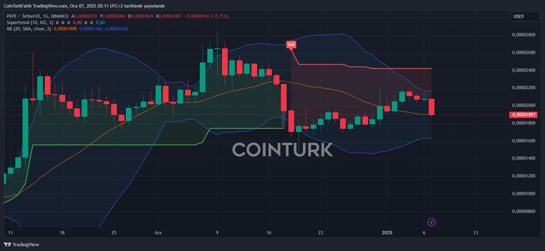 Si la caída continúa, PEPE podría probar el nivel de $0.00001741, con un posible soporte adicional en $0.00001222. Considerando el sentimiento negativo anticipado de las próximas actas de la Fed, a menos que ocurran cambios significativos en las próximas horas, la debilidad puede persistir. Bitcoin se ha recuperado ligeramente a $97,400, pero su pico diario fue de $102,724, marcando un día difícil para las altcoins.