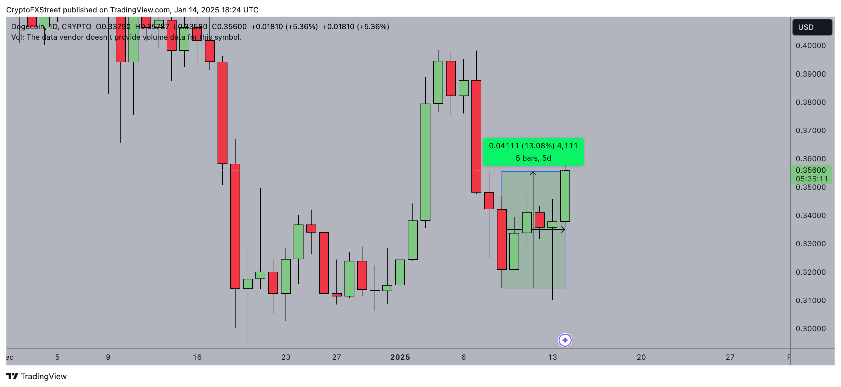 - Con la inauguración de Trump a una semana de distancia, DOGE parece estar preparado para más alzas mientras los especuladores alcistas dominan.