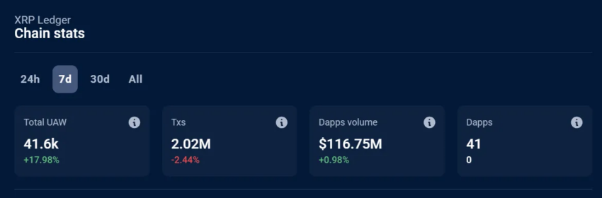 El XRP Ledger también vio un aumento de actividad en la última semana a medida que el número de DApps y monederos activos continúa creciendo en la red.