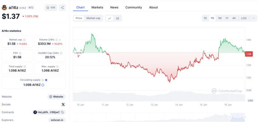 Además, AI16Z, que goza de verdadera notoriedad, se negocia en plataformas importantes como Bitget, ByBit, BitMart o MEXC. Lanzado el pasado mes de octubre, tiene una capitalización de 1,510 millones de dólares y actualmente ocupa el puesto 72 del mercado.