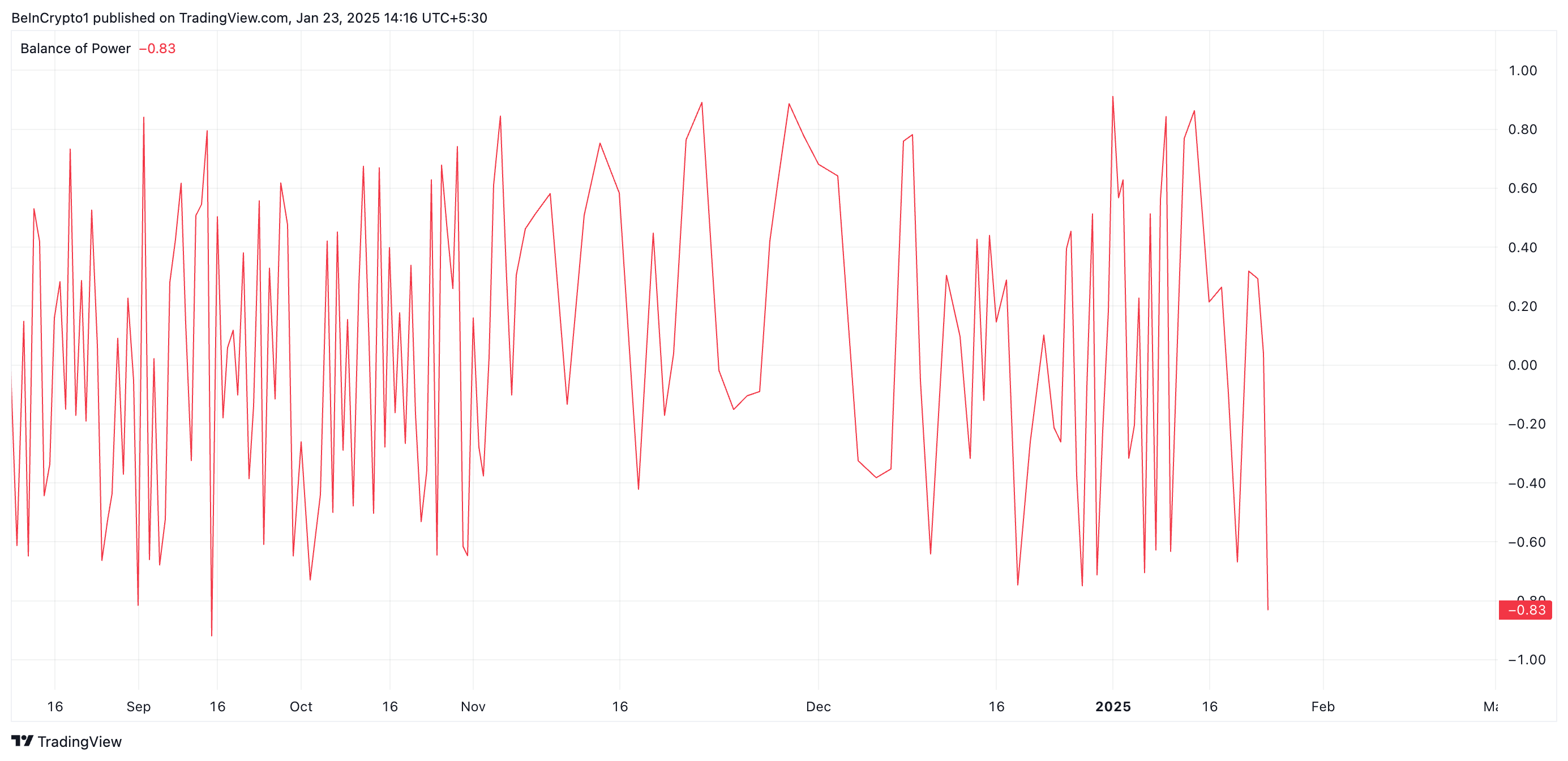 Notablemente, el Balance of Power (BoP) negativo de XRP confirma que esta toma de ganancias ya está en marcha. Al momento de la publicación, se sitúa en -0.83.
