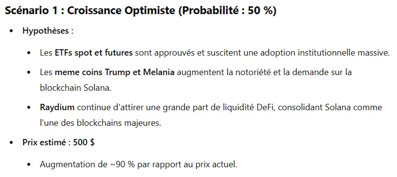 Inicialmente, ChatGPT consideró el peor de los casos. Este prevé un ligero retroceso en 2025 para SOL, con un regreso a 200 dólares. Las probabilidades son muy bajas, con sólo un 15% de posibilidades.
