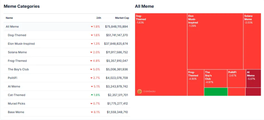 En medio del cambio de enfoque de los inversores, la capitalización de mercado de memecoins está disminuyendo, con la atención desplazándose hacia proyectos con valor técnico. Anteriormente, el fervor especulativo alrededor de las memecoins impulsaba rallies a corto plazo. Ahora, su falta de innovación fundamental ha resultado en una disminución de la confianza de los inversores.