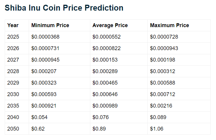 Aunque Shiba Inu parece haber salido del centro de atención, sigue siendo un actor indispensable en el mercado de criptomonedas. Las predicciones sobre su futuro son divergentes: algunos analistas piensan que alcanzará 0,0007 $ para 2030, otros retrasan este plazo a 2034.