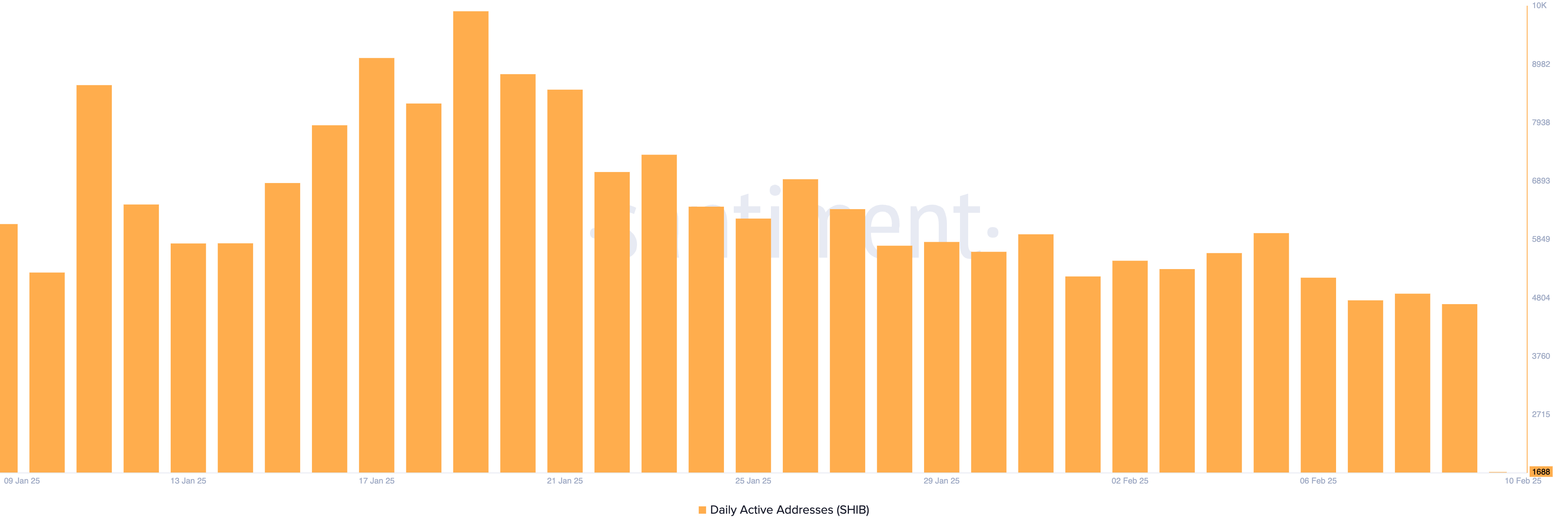 Para contexto, el 9 de febrero, 4,690 direcciones de monederos activas participaron en al menos una transacción de SHIB. Esto marcó una caída del 53% desde el máximo del año hasta la fecha de 9,928 direcciones activas registrado el 19 de enero.