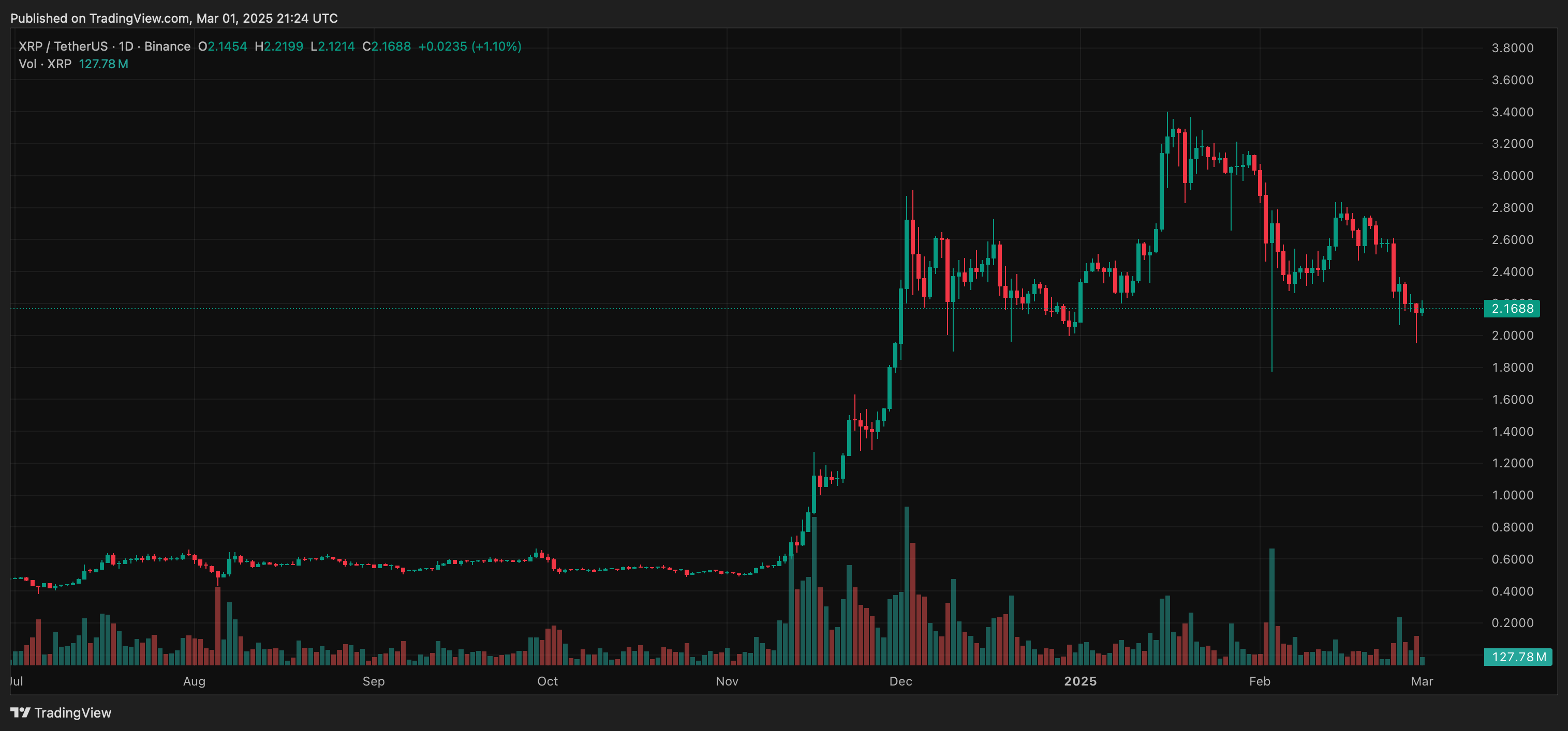 A pesar de una reciente caída en el mercado de criptomonedas, el movimiento del precio de XRP ha sido notable. El precio, que cayó por debajo de los 2 dólares la semana pasada, aumentó un 8.23% en las últimas 24 horas, alcanzando los 2.21 dólares. Este movimiento indica que el altcoin sigue siendo robusto a pesar de las fluctuaciones del mercado.
