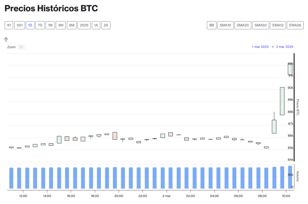 Por otro lado, BTC y ETH experimentaron subidas más moderadas de 8% y 13%, probablemente debido a la incertidumbre sobre su rol en la reserva.