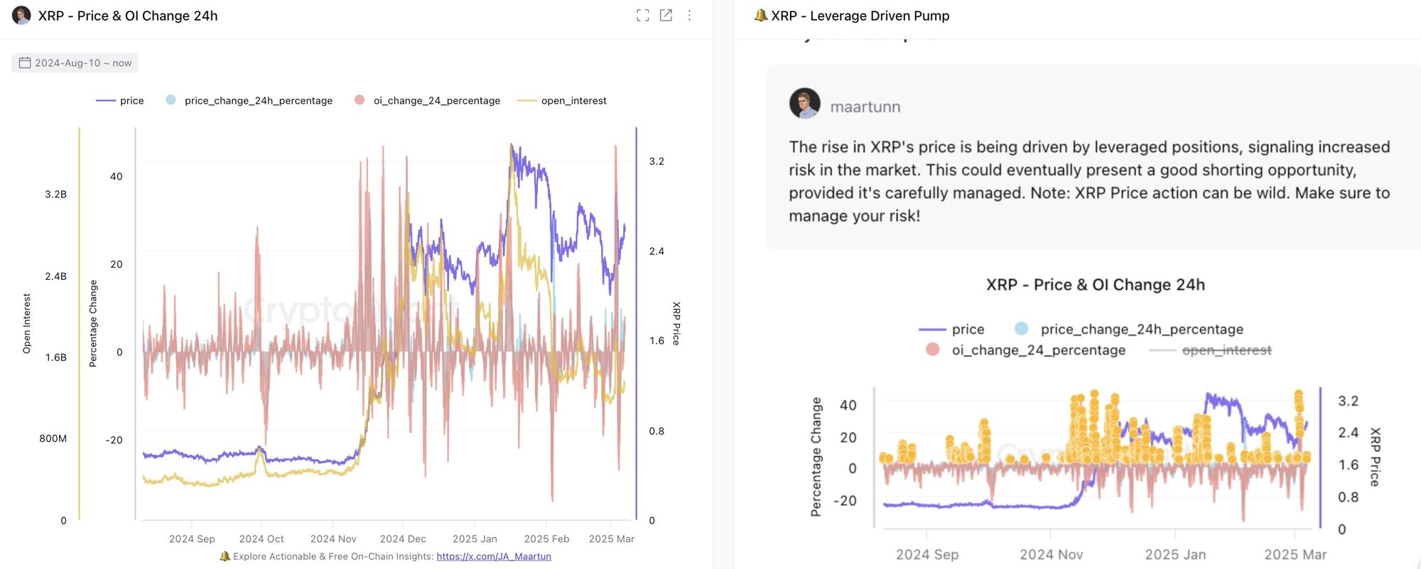 Al mismo tiempo, CryptoQuant advirtió en X que el interés abierto para el tercer activo digital más grande ha aumentado más del 5.5% en un corto período de tiempo, lo que sugiere un movimiento de precios "impulsado por el apalancamiento". La firma de análisis agregó que los próximos movimientos de precios de XRP podrían ser "salvajes" y aconsejó a los operadores que gestionen su riesgo.
