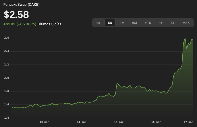 El reciente aumento en el precio de $CAKE se atribuye a varios factores clave:diariobitcoin.com