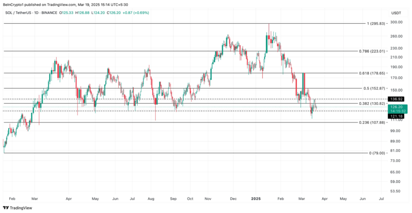 Confirma un cambio de una tendencia alcista a una bajista, indicando un debilitamiento del impulso y un mayor riesgo a la baja. Desde que surgió el patrón, el precio de Solana (SOL) se ha negociado dentro de un rango estrecho. Desde entonces, ha oscilado entre la resistencia formada en 136,92 dólares y un piso de soporte de 121,18 dólares.