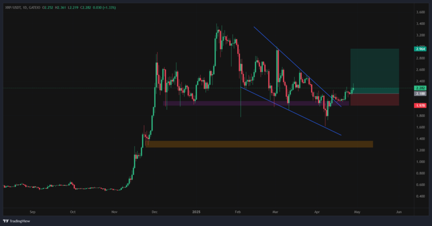 El analista Joe Swanson destaca que XRP muestra señales de una tendencia alcista, al confirmarse la ruptura inversa del patrón de cabeza y hombros. Además, se ha roto la cuña alcista, la resistencia clave se ha convertido en soporte y se ha formado un mínimo más alto.