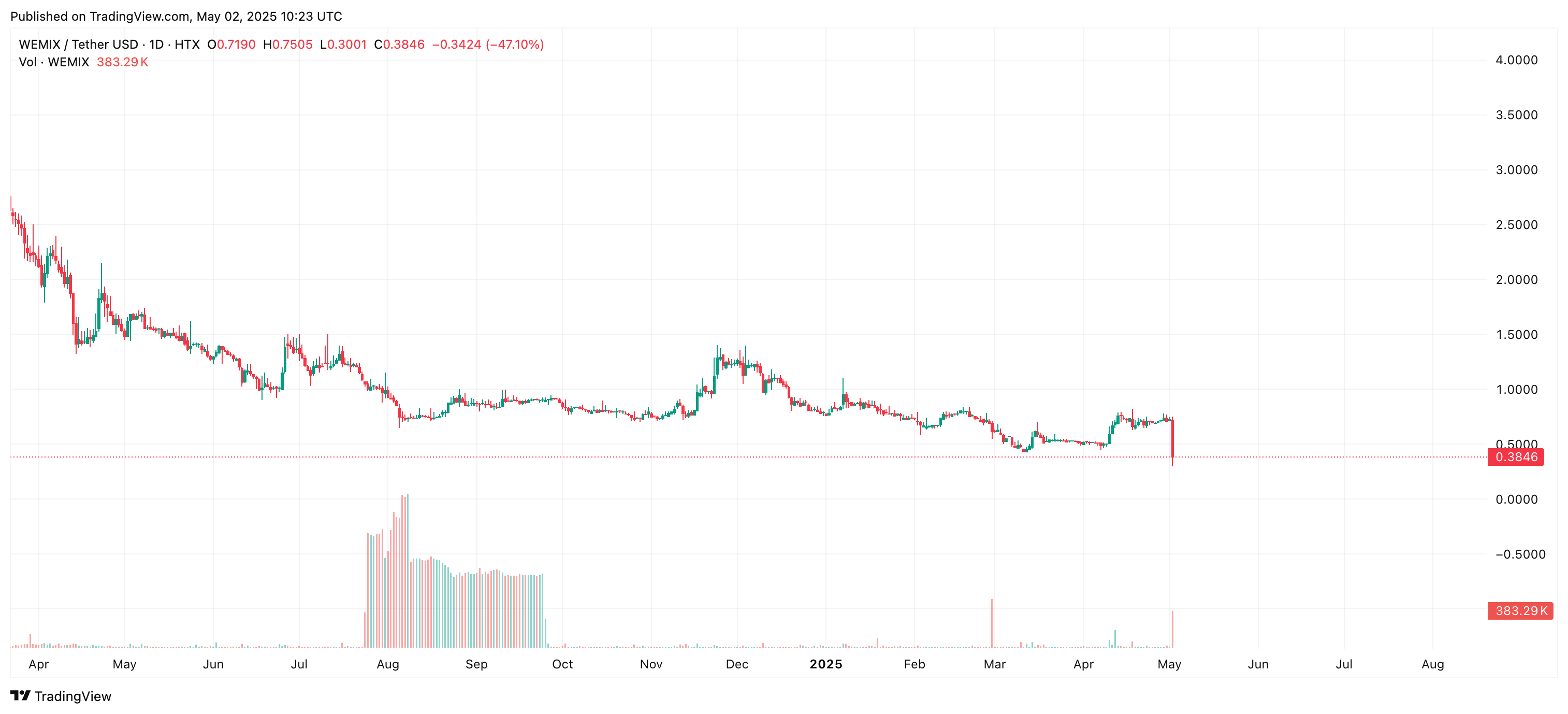 El desarrollador surcoreano de juegos Web3, Wemade, experimentó un colapso dramático en el valor de su altcoin, Wemix, perdiendo más del 60% tras un anuncio sobre su exclusión de las principales casas de cambio de criptomonedas de Corea del Sur por segunda vez. El precio de la altcoin cayó de $0.7225 a $0.2757 en tan solo 15 minutos, provocando ventas de pánico entre los inversores. Según CoinMarketCap, aunque el precio se recuperó posteriormente a $0.36, todavía se negociaba con una pérdida aproximada del 50% en comparación con el día anterior. En el centro de esta decisión está DAXA, la Alianza de Intercambio de Activos Digitales, que representa efectivamente el espacio de criptomonedas de Corea del Sur. Intercambios importantes como Upbit, Bithumb, Coinone, Korbit y Gopax declararon su intención de cesar las transacciones de Wemix para el 2 de junio, con los servicios de retiro finalizando para el 2 de julio.