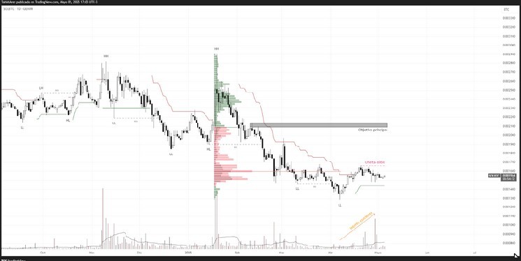 Aunque aún no hay una ruptura clara de estructura, el volumen reciente comienza a mostrar signos de interés comprador. En el caso de un rebote, la zona de los 0.030 BTC aparece como el principal objetivo de mediano plazo, alineado con el punto de control del volumen.