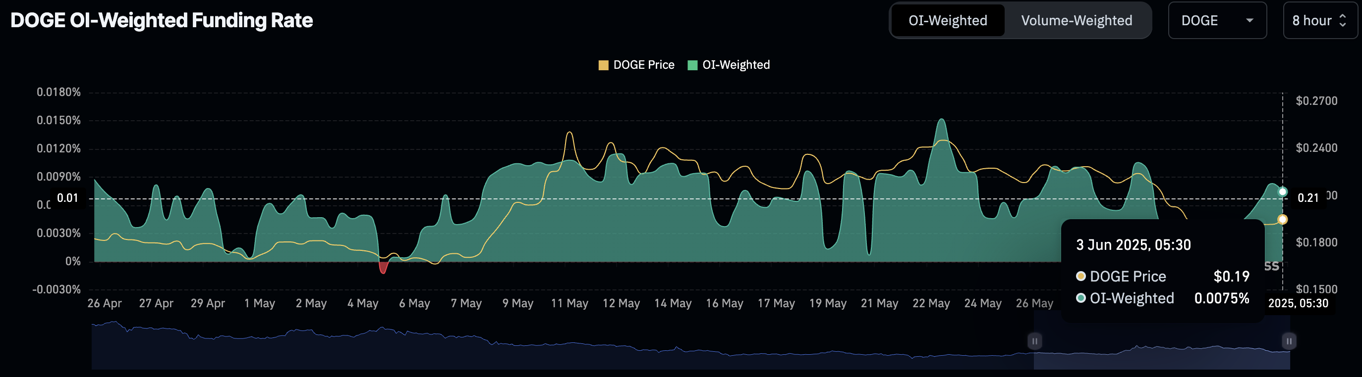 Tasa de financiación ponderada por OI de DOGE. Fuente: Coinglass