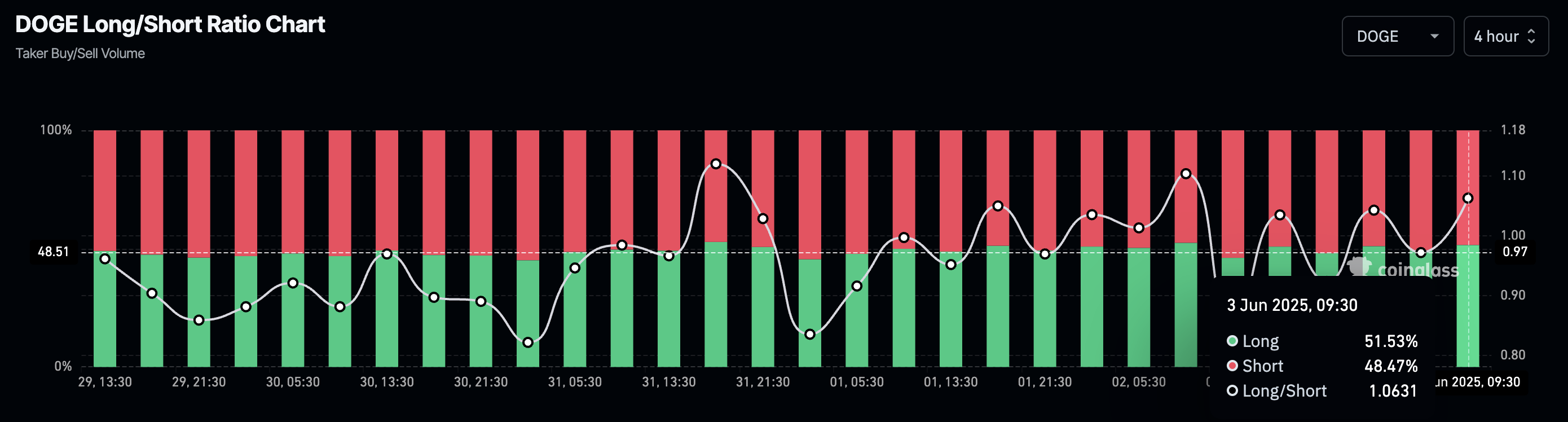 Gráfico de relación larga/corta de DOGE. Fuente: Coinglass