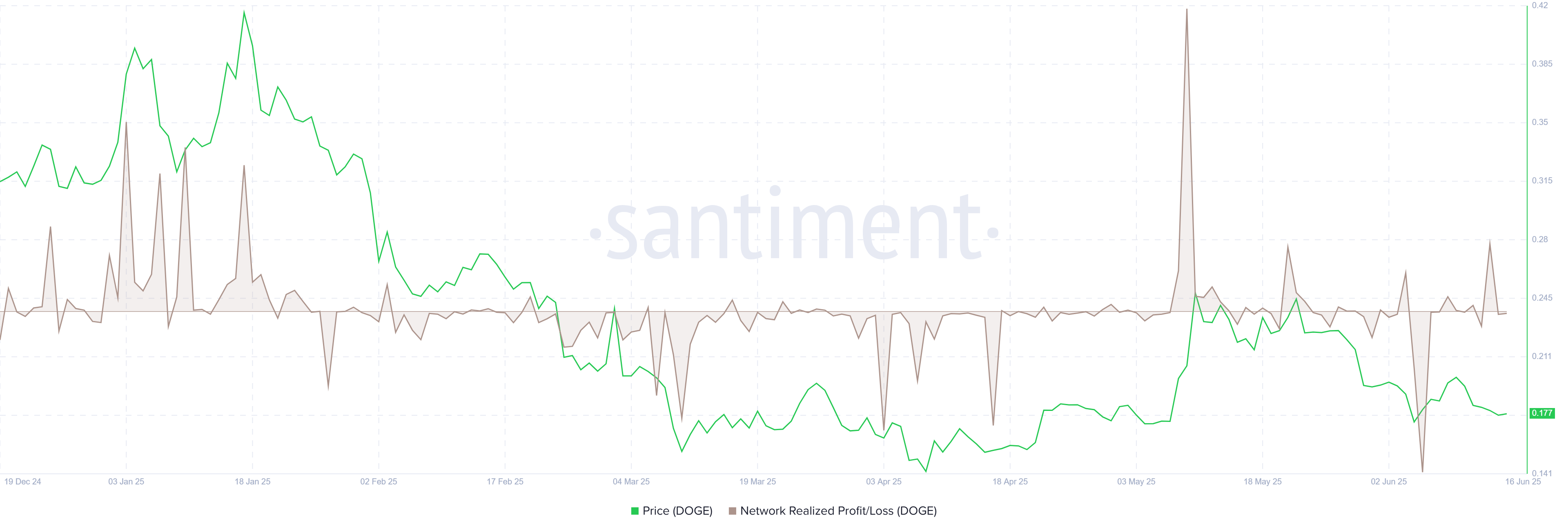 Gráfico NPL de Dogecoin. Fuente: Santiment