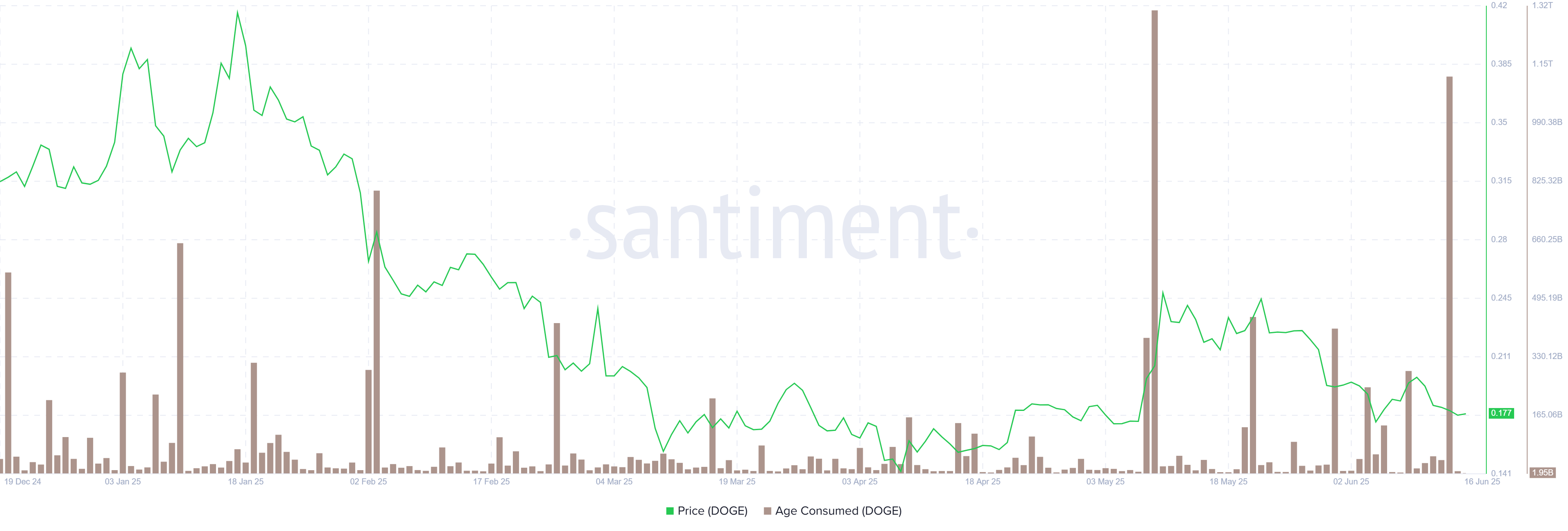 Gráfico de Edad Consumida de DOGE. Fuente: Santiment