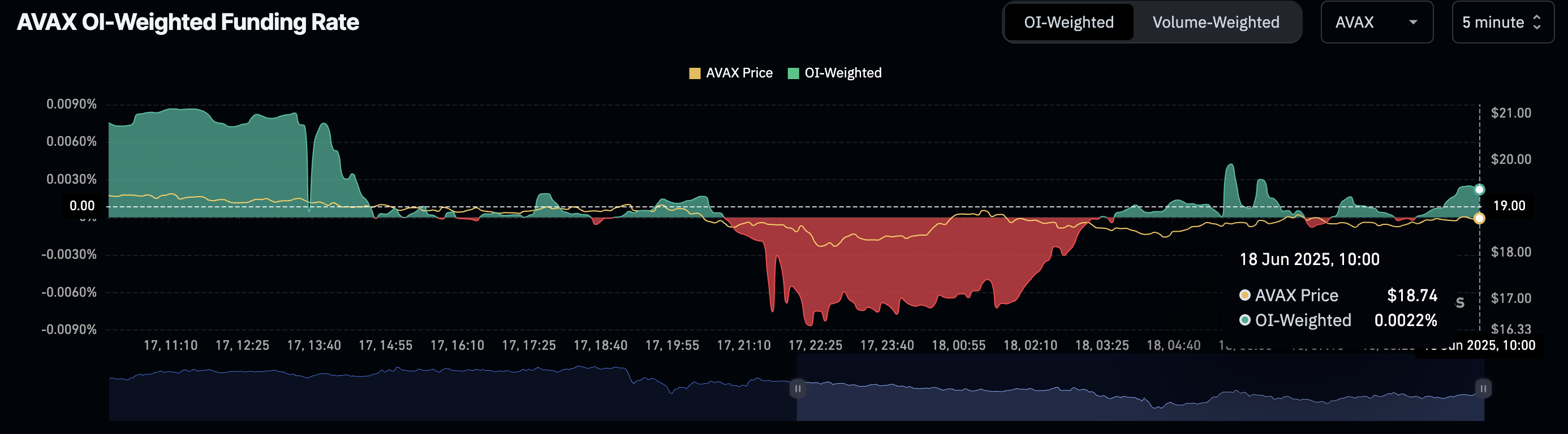Tasa de financiación ponderada por OI de AVAX. Fuente: Coinglass