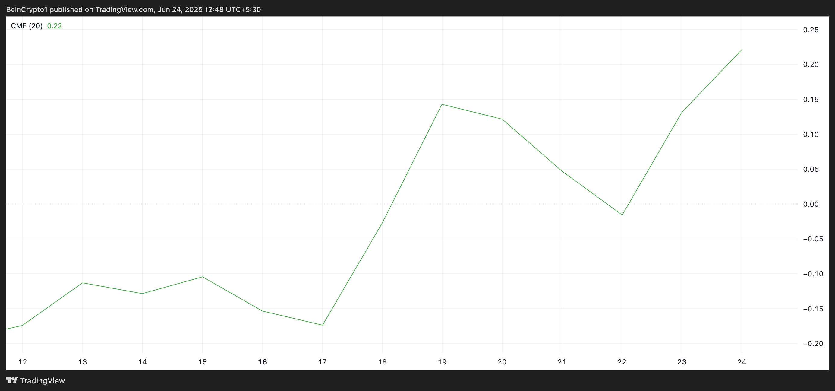 Para la altcoin, su configuración de CMF refuerza la narrativa de que el rally actual está respaldado por una fuerte demanda y liquidez.