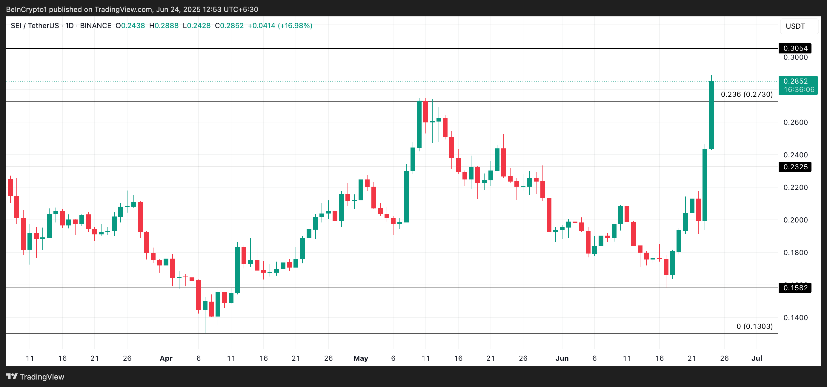 La altcoin se negocia a un máximo de cuatro meses de 0.28 dólares al momento de la publicación. De hecho, en medio del opaco rendimiento del mercado en general durante la última semana, el precio de SEI ha aumentado más del 65%.