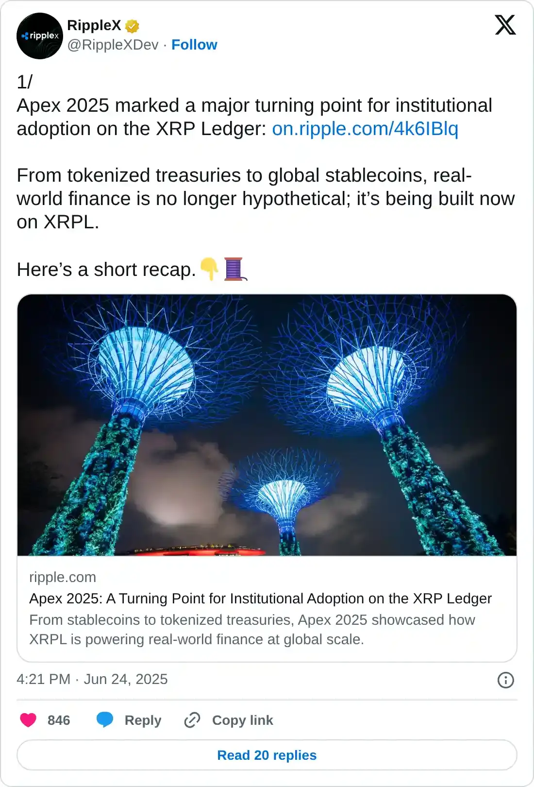 Ripple ha publicado el informe de su cumbre Apex 2025 celebrada entre el 10 y el 12 de junio. La cumbre reunió a actores clave de la industria, incluidos constructores, investigadores, instituciones e innovadores.