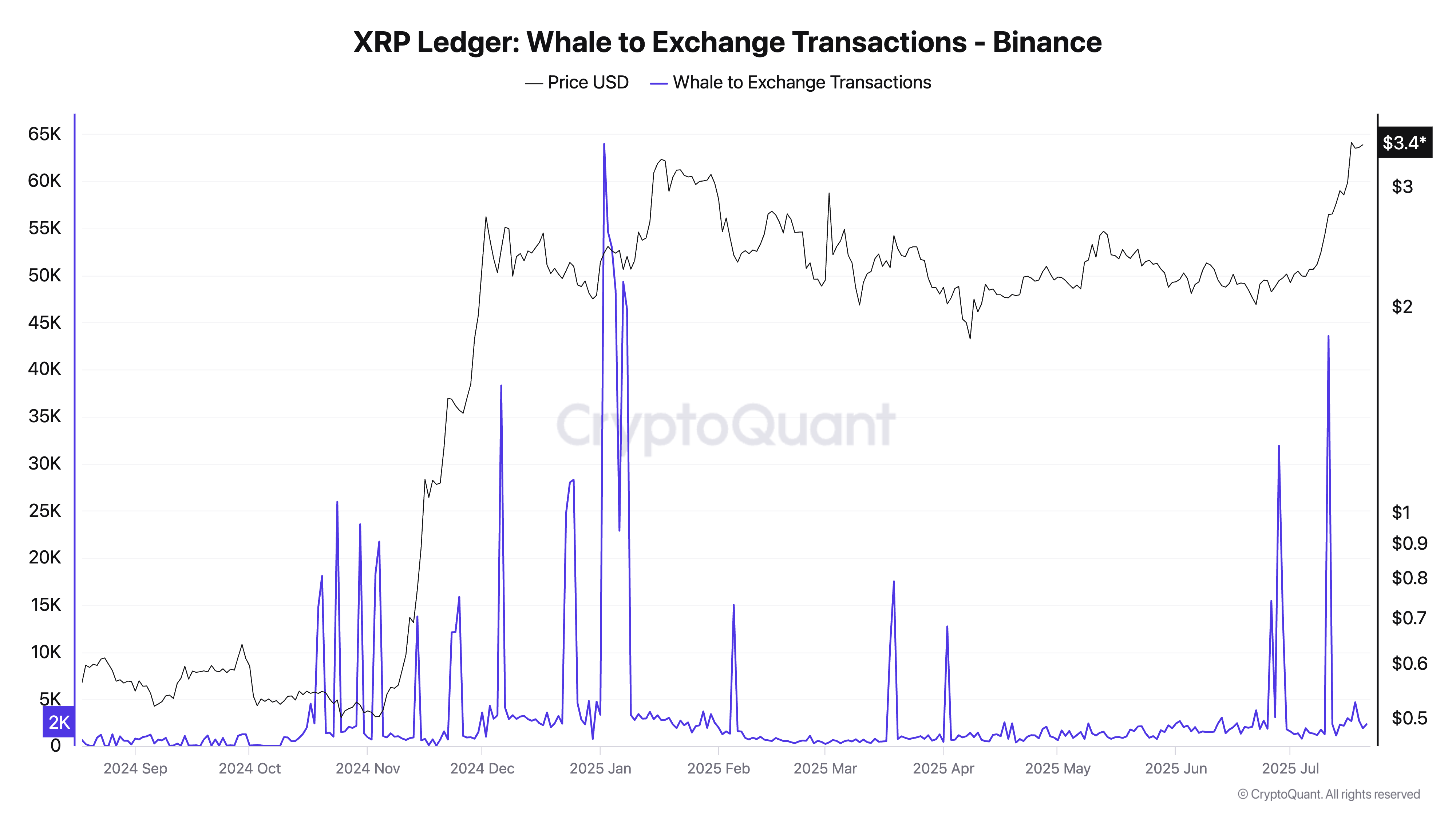 Transacciones de ballenas de XRP a intercambios (Binance) | Fuente: CryptoQuant