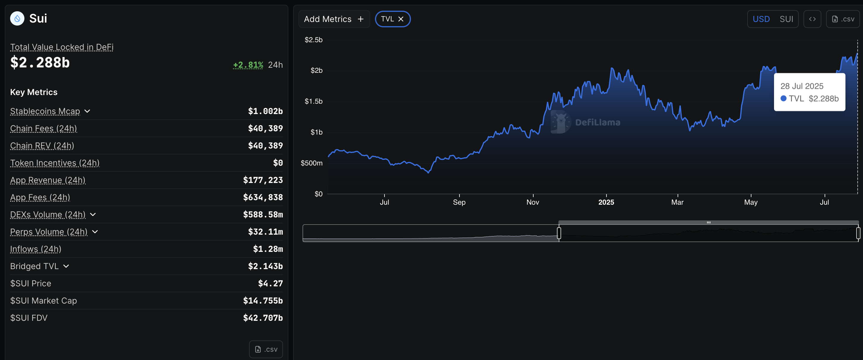 El TVL de SUI registra un nuevo máximo histórico de 2.28 mil millones de dólares