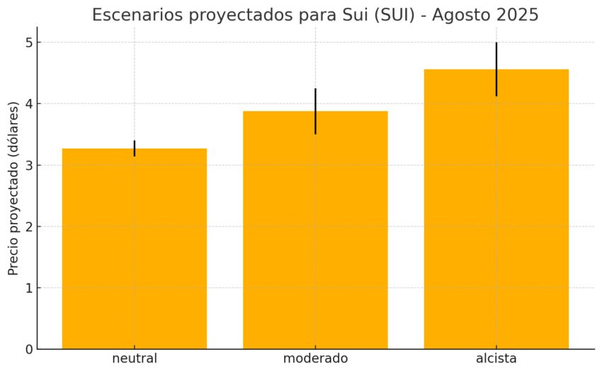 SUI cotiza cerca de 3.99 dólares, con rango intradía entre 3.88 y 4.25 dólares. Desde un análisis técnico diario, el token muestra una estructura ascendente con mínimos cada vez más altos y un RSI en 60, apuntando a un sesgo alcista moderado.