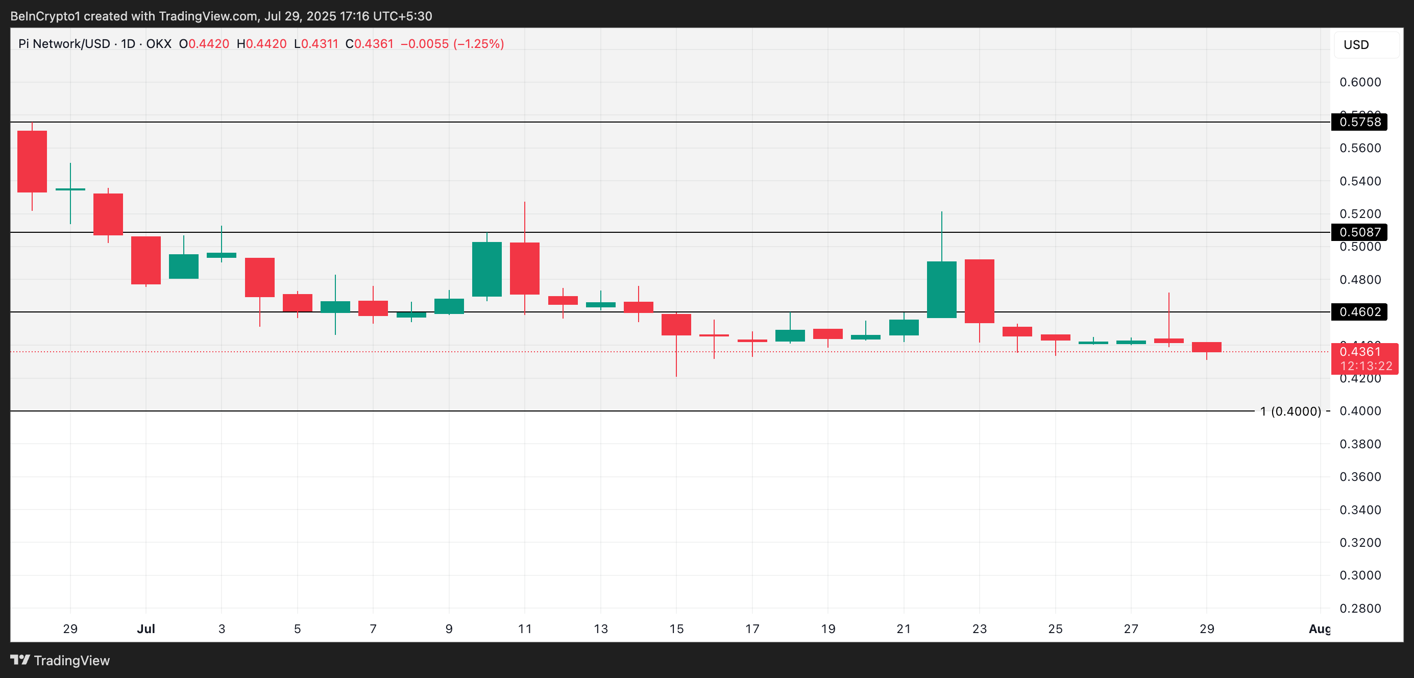 El rendimiento del precio de Pi Network (PI) ha permanecido en gran medida decepcionante en las últimas semanas. Ha intentado subir, pero no ha logrado mantener un impulso alcista significativo.