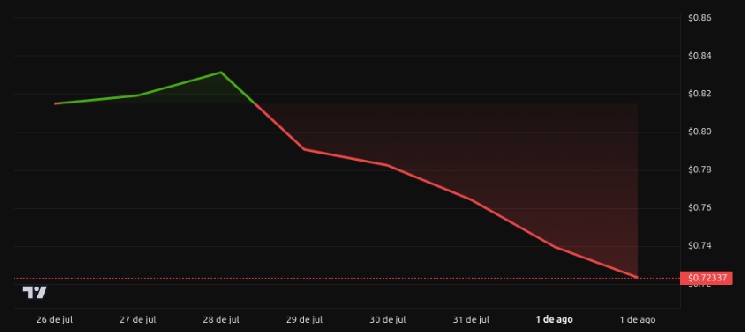 Soportes relevantes en 0.70-0.65 dólares; resistencias en 0.78‑0.83 dólares para retomar el patrón alcista. Si se mantiene por encima de los 0.70 dólares, podría buscar un rebote técnico; de perder los 0.66 dólares, corre el riesgo caer a 0.60‑0.62 dólares.