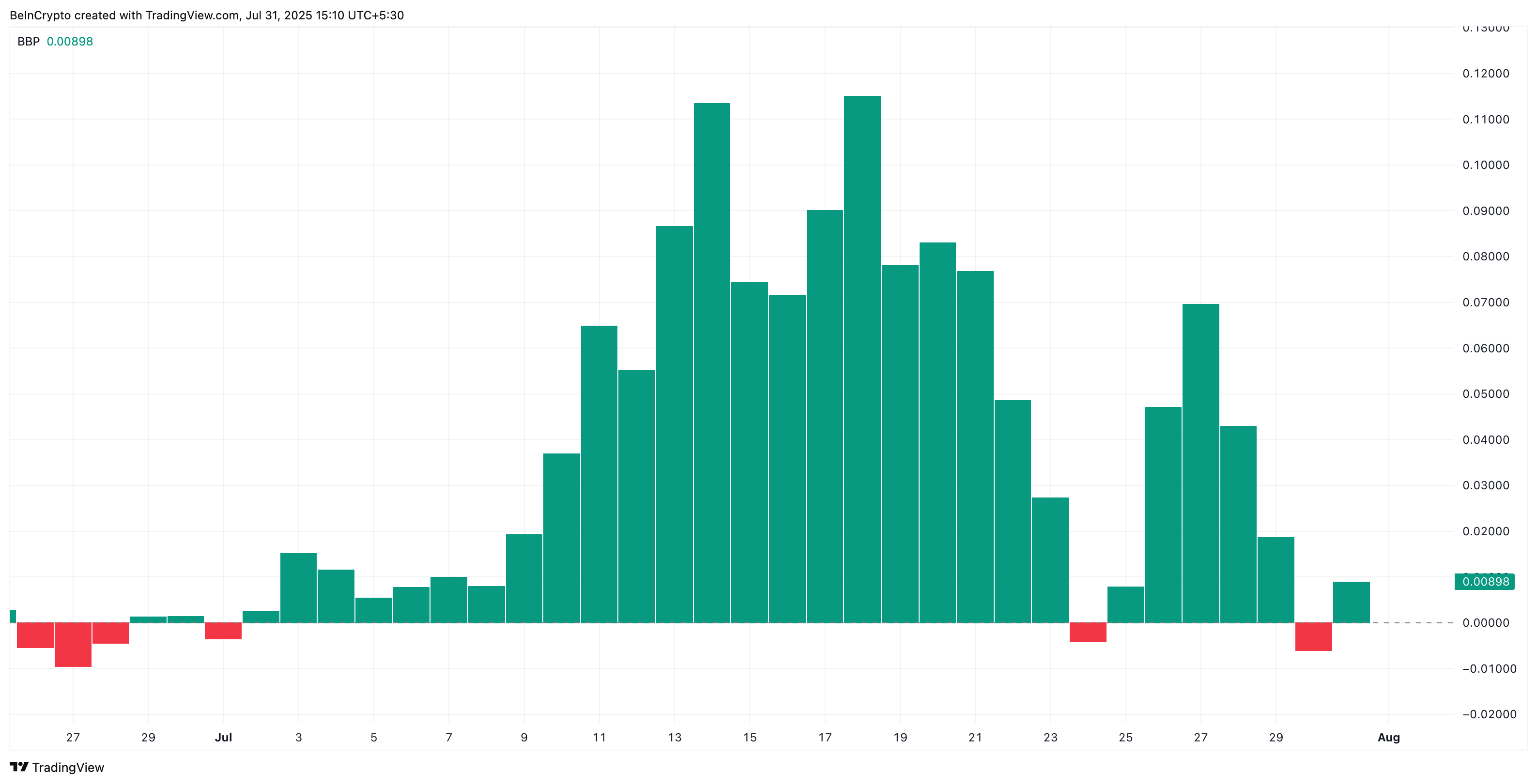 El indicador Bull-Bear Power (BBP), que mide si los alcistas o bajistas tienen un momentum más fuerte, se volvió brevemente negativo en una sola sesión la semana pasada, pero rápidamente volvió a verde.