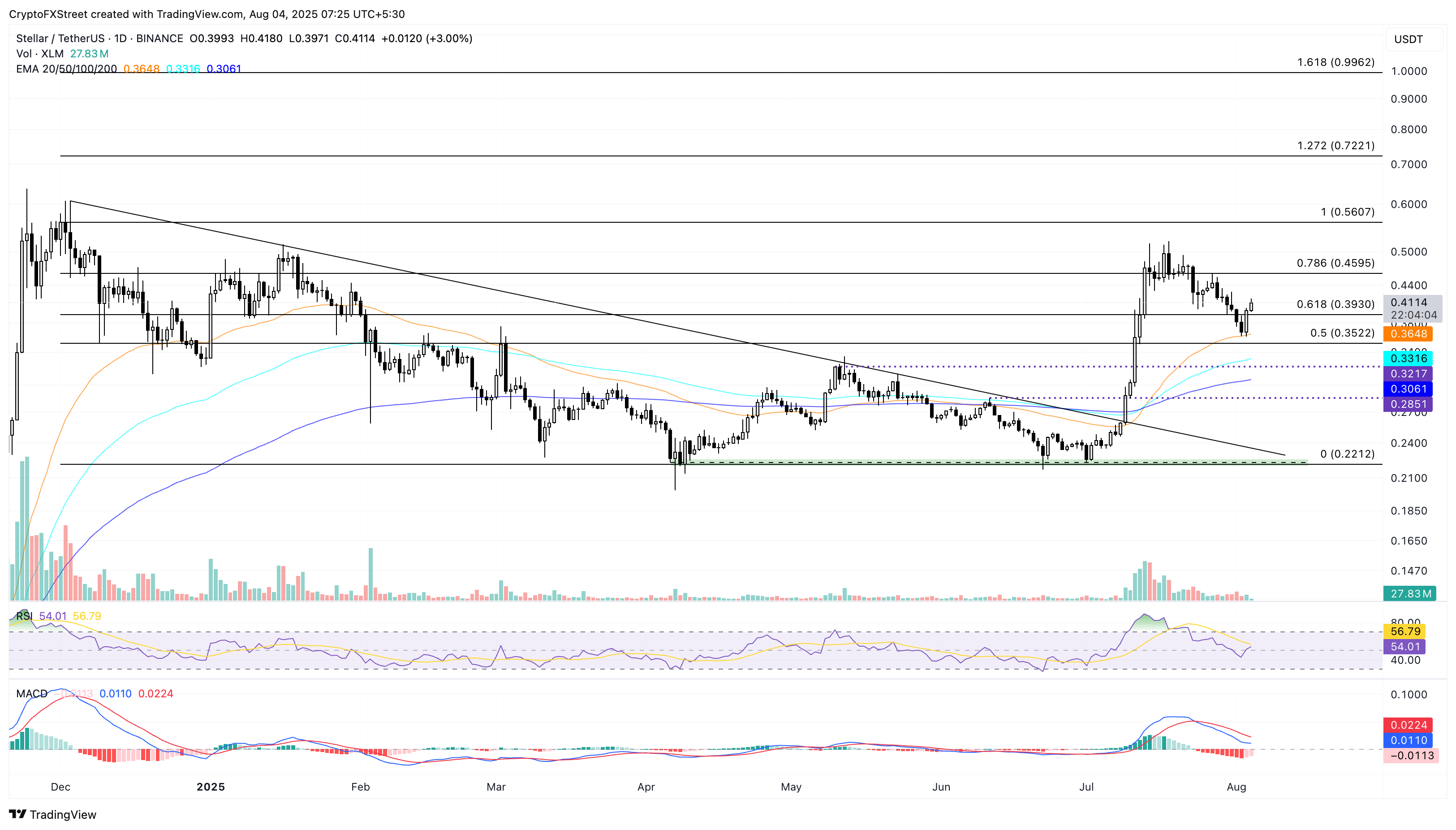 Stellar rebota desde la EMA de 50 días, apunta a 0.45$