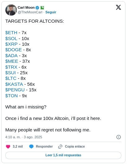 En el dinámico mundo de las criptomonedas, las predicciones de expertos suelen captar la atención de la comunidad. Recientemente, el reconocido analista Carl Moon con más de 1,5 millones de seguidores en X compartió su visión sobre 12 altcoins con alto potencial, destacando cuáles podrían mostrar un desempeño notable en el futuro cercano. Estas proyecciones han generado un intenso debate entre entusiastas y profesionales del sector.