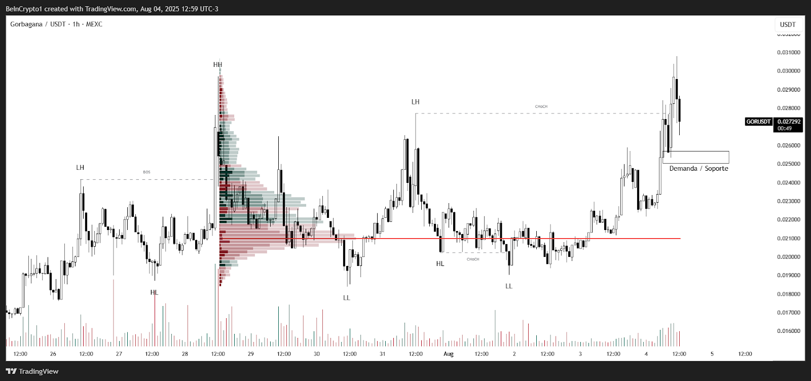 En caso de que la demanda se active, GOR podría volver a probar los 0.0310 dólares e incluso buscar nuevos máximos si el impulso se sostiene. El volumen previo respalda esta posibilidad, y la estructura técnica favorece una continuación alcista mientras se respete el soporte.