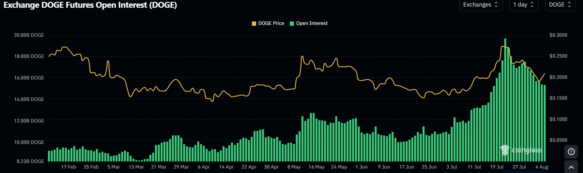 Interés Abierto de DOGE. Fuente: Coinglass